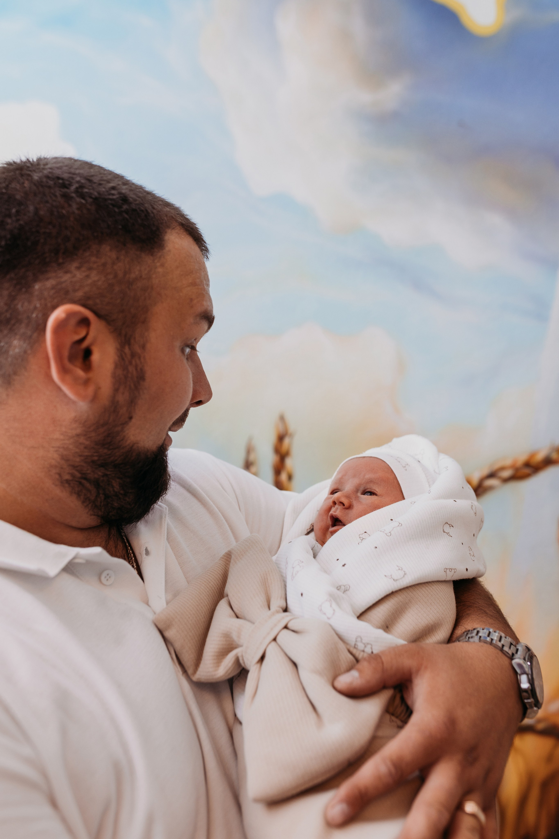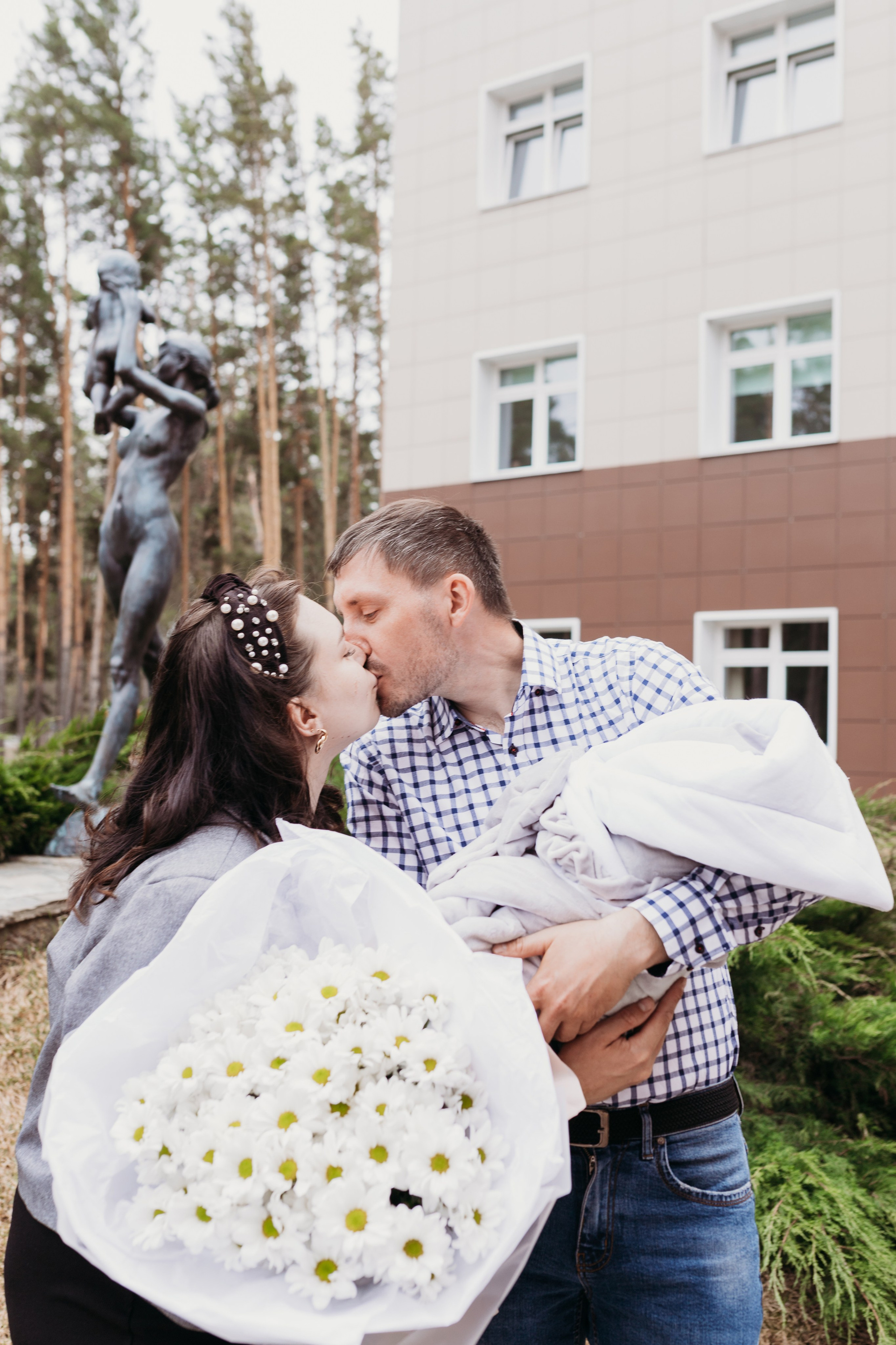 Фотосессия включает в себя репортажную съемку выписки и постановочные кадры с семьей и родственниками. Также делаем кадры на улице.