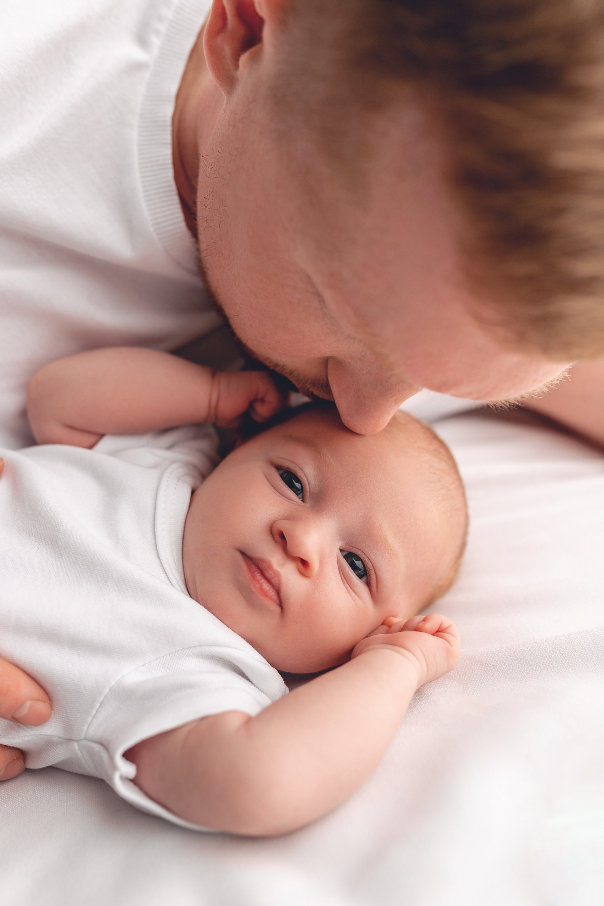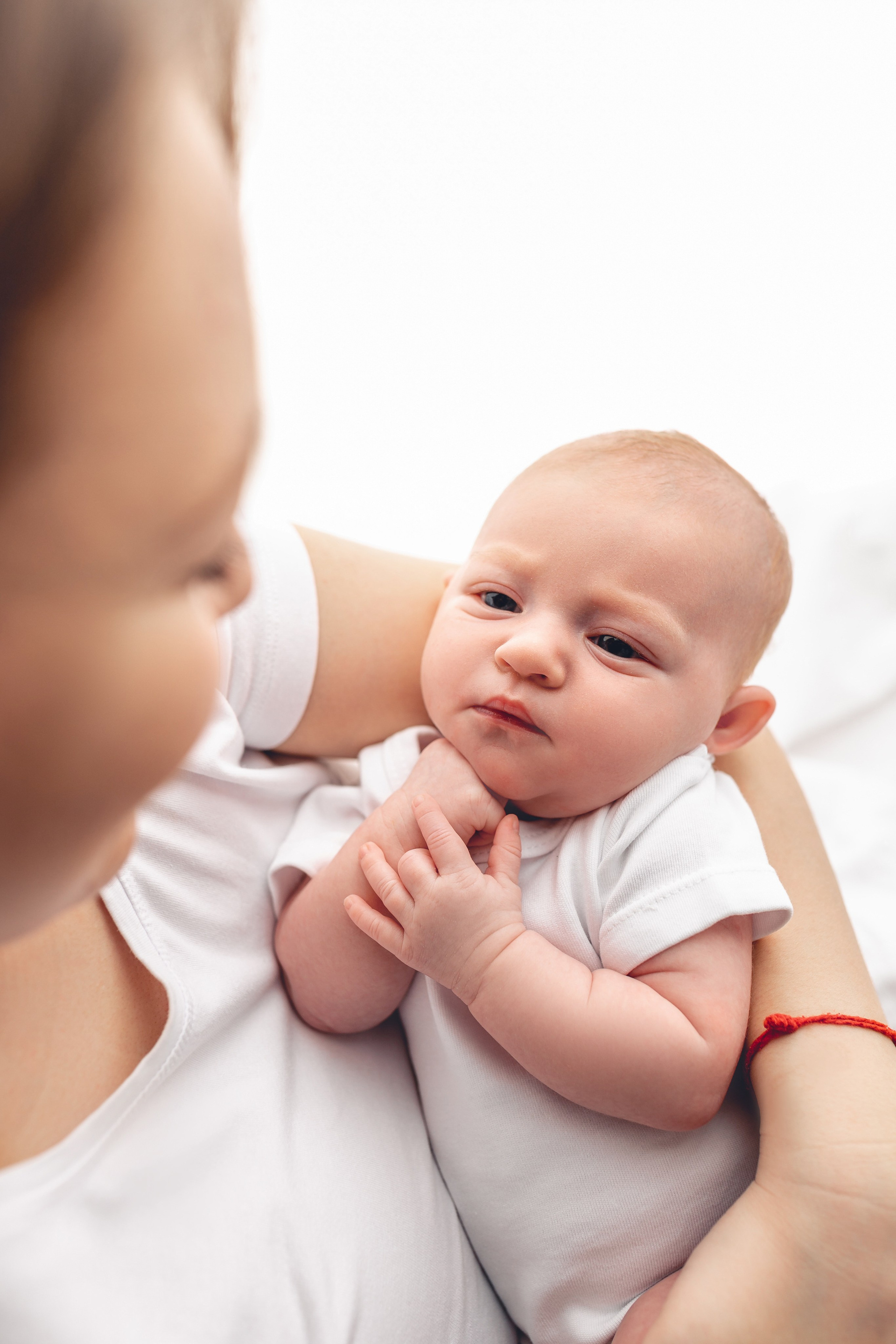 Основной цвет фотосессии — белый. Белый фон, белая простынь, белая подушка, белые футболки и белый бодик. Но вам не нужно никак подготавливаться — все это я привезу с собой. Малышу не обязательно спать.