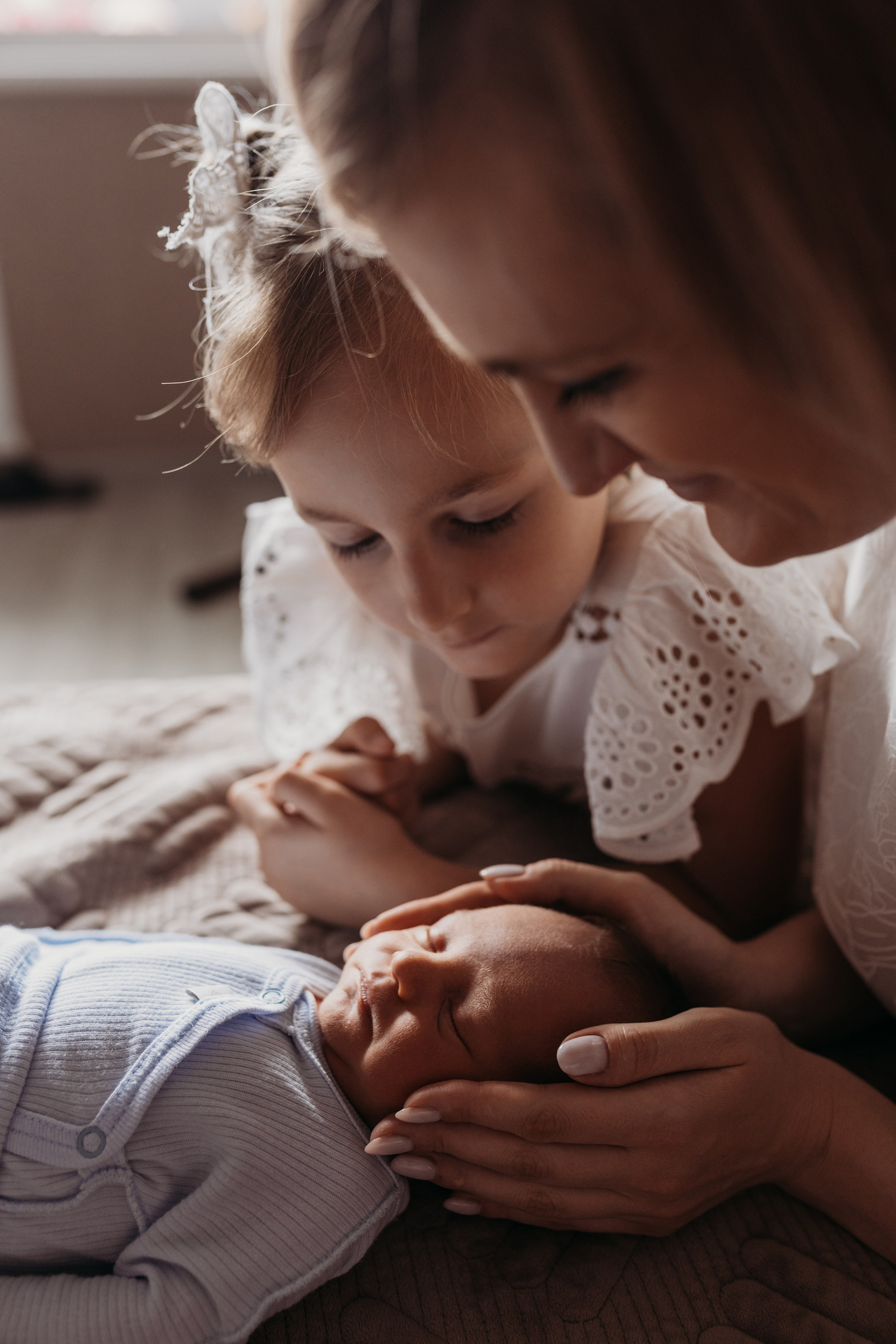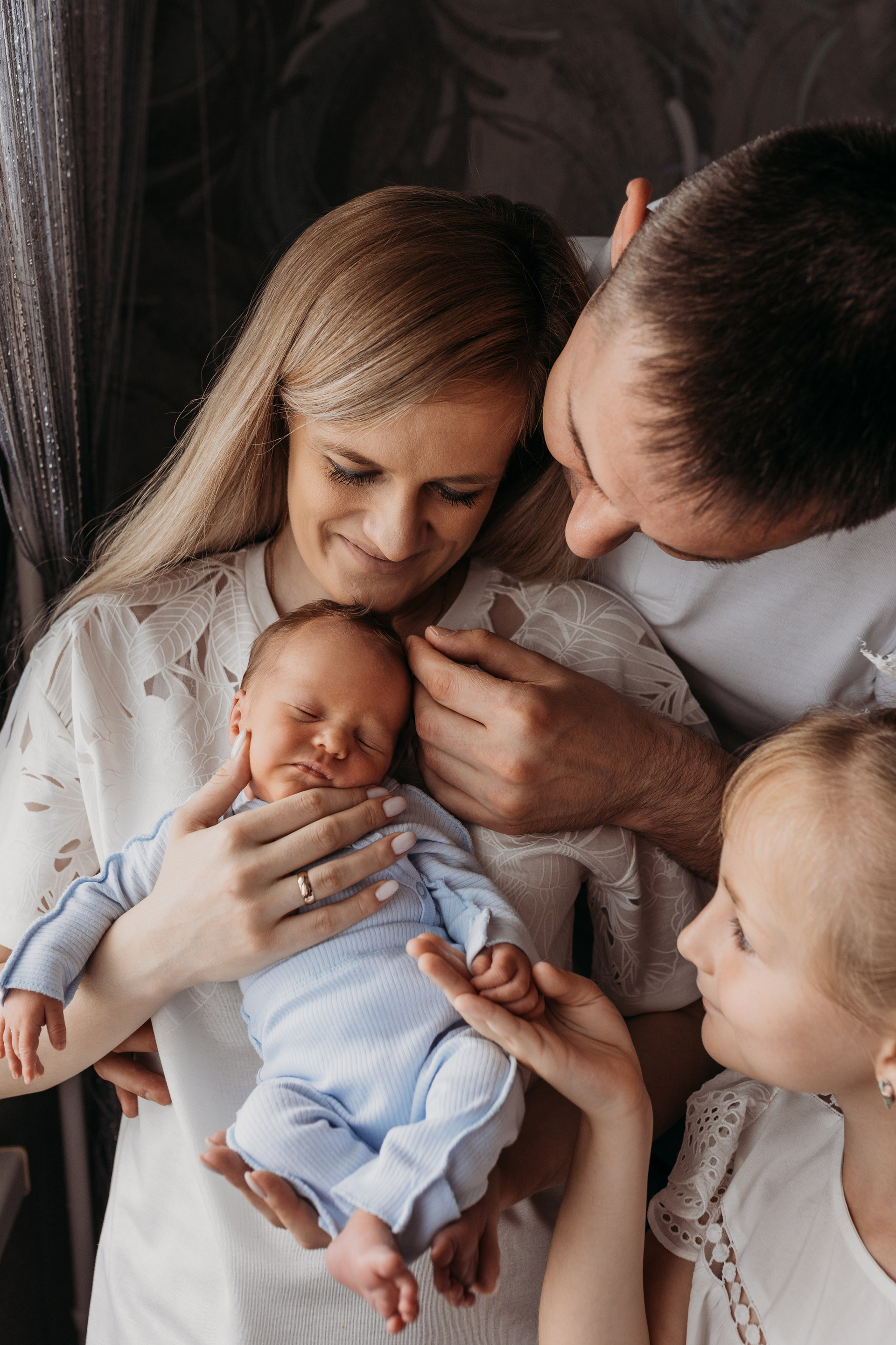 Повседневные моменты жизни семьи с новорождённым, без постановочных сцен и сложного реквизита